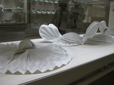別以為下面這個樣式容易。這可是奧地利帝國專有的桌巾摺法(imperial fold),是世界上僅有幾人知道,每次只有單傳的極機密!當初,只有皇帝用餐時才會擺出來的。就連今天,它也是只有他國首長級的人來拜訪,才會出現的。Imperial fold兩側,總是要塞入兩個捲筒麵包。