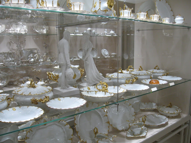 這套是專門為Franz Joseph皇帝和Sisi皇后製作的一套瓷器餐具組。中間可看到他們的人像。這些皇帝們好像盤子永遠不嫌多就是了~~