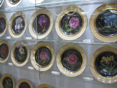 以往Habsburg的家族傳統裡,每一位皇太子都得學有一技之長。神聖羅馬帝國的最後一任皇帝Francis二世,也是後來成立的奧地利帝國的Francis一世(號碼重編),對園藝非常有興趣。他繼任皇帝時,宮廷裡因此多了兩套以花為圖案的瓷盤組,專門拿來端甜點用。盤子還真多咧~~
