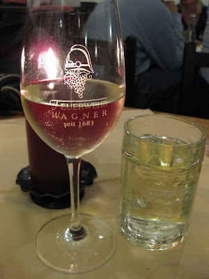 Heuriger是一種當地奧地利人才真正懂得體會的文化。在夏天的傍晚,愜意地坐在椅子上,在戶外乘著涼風,和朋友們悠閒地聊天,是生活上簡易的一大享受。近年來,許多觀光客來到維也納這兒,也想體驗一下當地人的生活,所以清靜的Heuriger鎮,也開始變得很商業化。其中,又以北邊的Grinzing為最較受歡迎。看到旅遊書上如此介紹,原本打算去別處的,但早上離開前和旅館Hotel Ruthensteiner櫃檯的工作人員問問,得知Grinzing還是有比較屬於當地人才會去的Heuriger,抄下了她推薦的那一家。