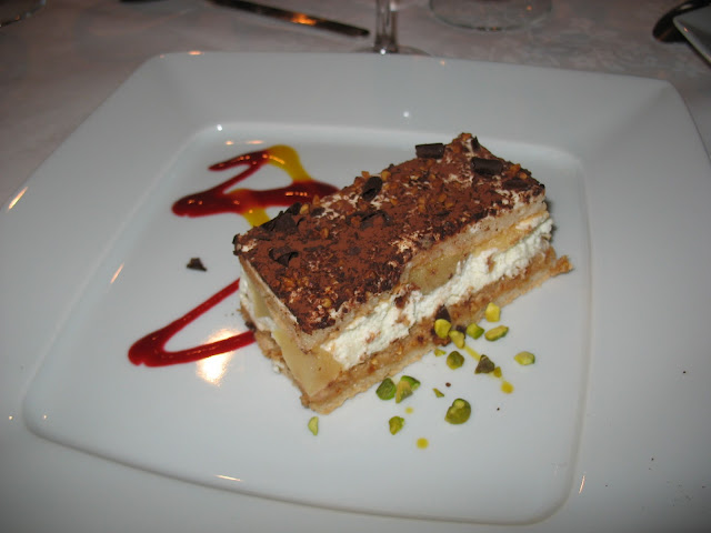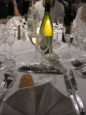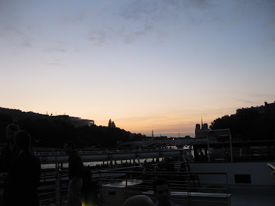 船停靠在岸許久,並不斷端出各式各樣的小點心(hors d'oeuvre)。我們當初還在想,有要開船嗎?不過等到太陽差不多下山之後,就真正開船囉,大家也就正式到樓下船艙內用餐。