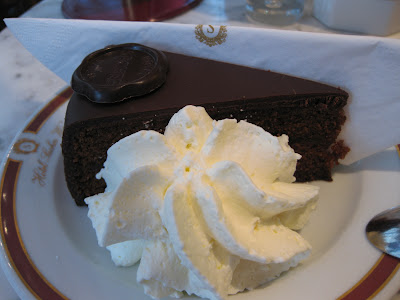 走了一陣子,想再回到維也納市中心的商店區了。在離開美國前往奧地利之前,就已經被吵著說一定要去吃沙河蛋糕。今天稍早去參觀Hofburg,Cafe Sacher自然被排在一定要去光顧的店家。