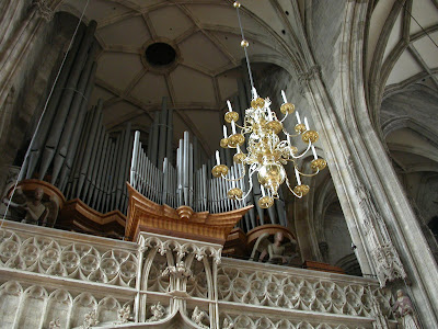 教堂的管風琴。歷代有許多音樂家,曾在這兒擔任風琴師。今天大多世人會知道的一位,應當是寫那首名曲卡農的作曲家Pachelbel。他於1673年和1677年之間在維也納時在這兒任職過。今天的風琴,內部很多機械,都已經由電子操作了。