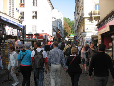 喔對了,這兒要提醒一下。在檯階的起始點,會有一群非裔的男子們,手上拿著自製的手環。如果你一不注意,他們就會迅速將你的手抓過來,並將一個套在你的手腕上。這時你發現上當了已經來不及了,因為他們立刻要求付錢。幸好,來巴黎之前,已經事先做了一點功課,中英文網站都有適當地警告。有人拿著手環在我們面前揮來揮去時,我們直接掉頭就走了。